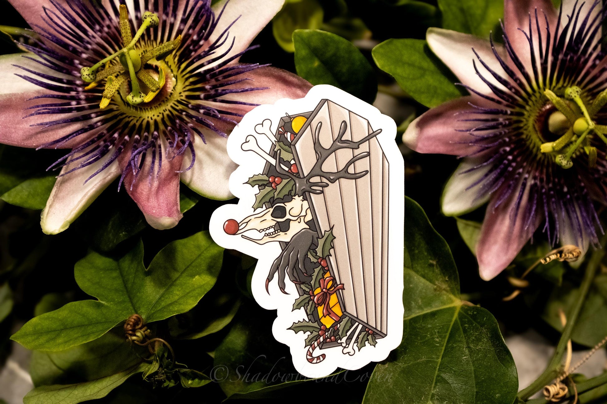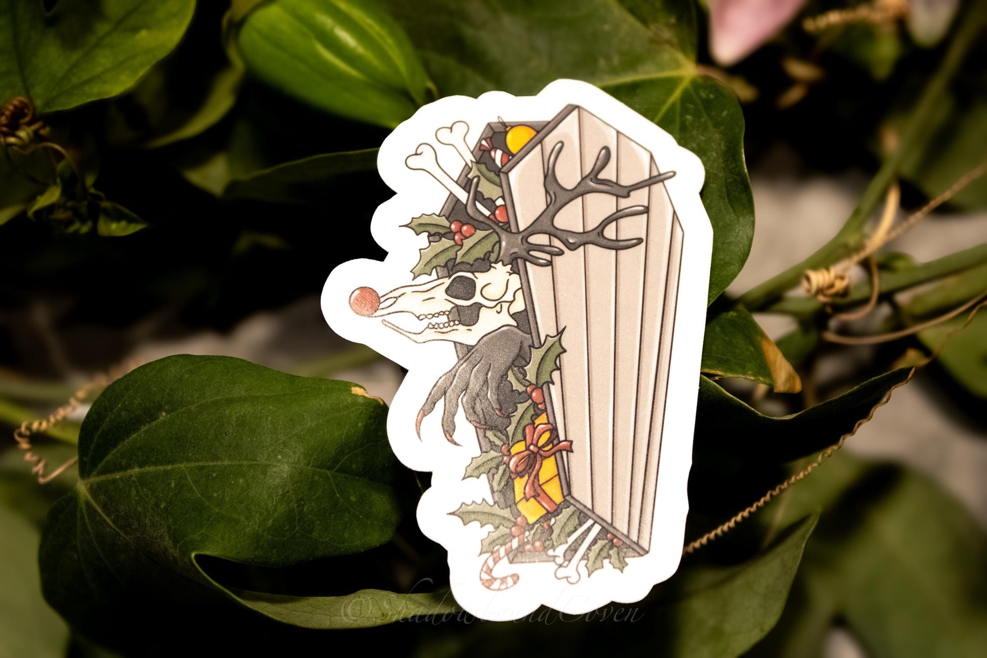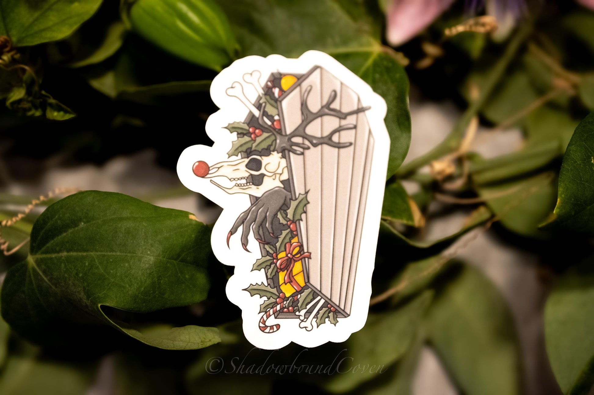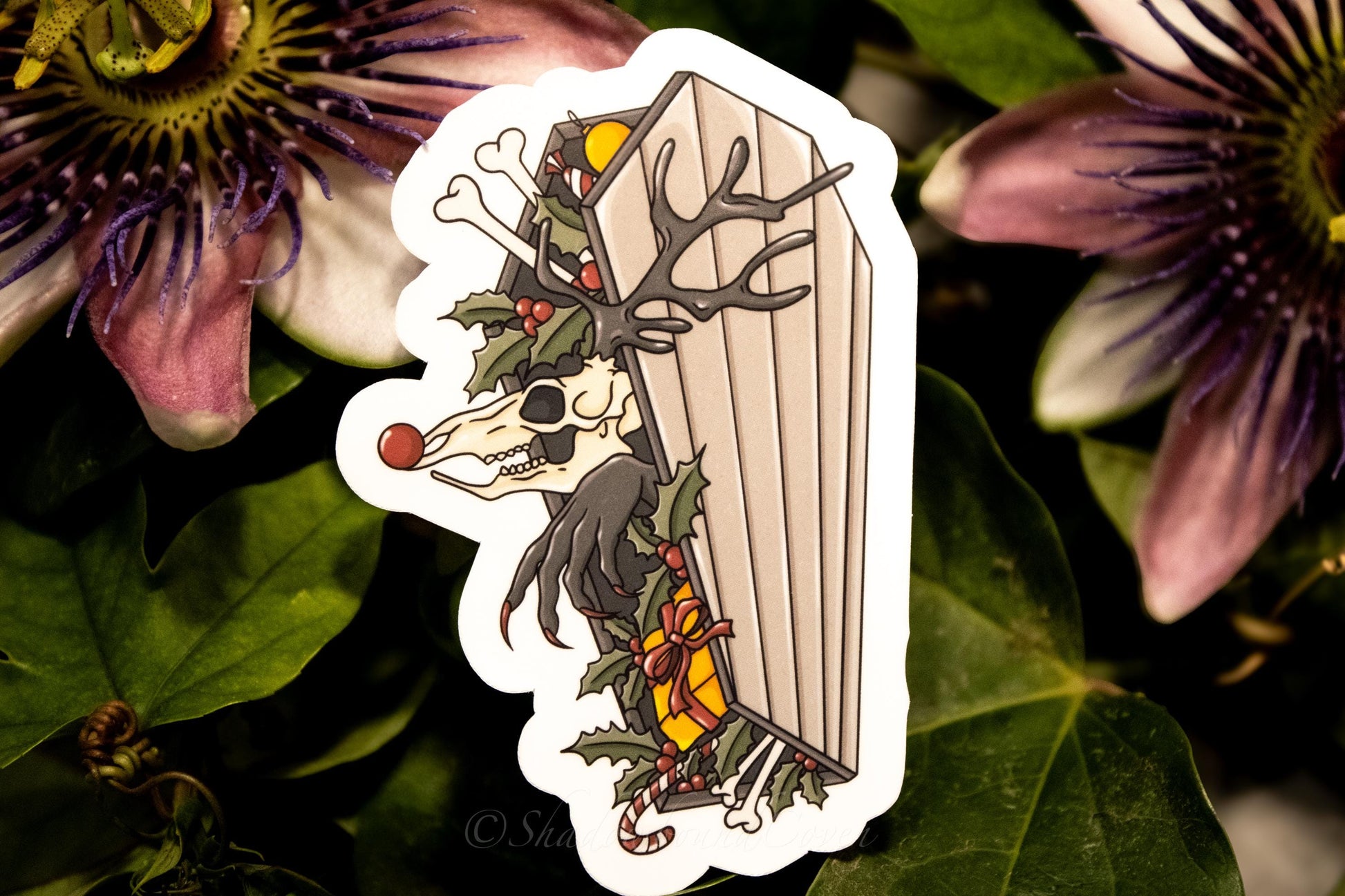 Dark Academia Reindeer Coffin Holiday Waterproof Vinyl Sticker