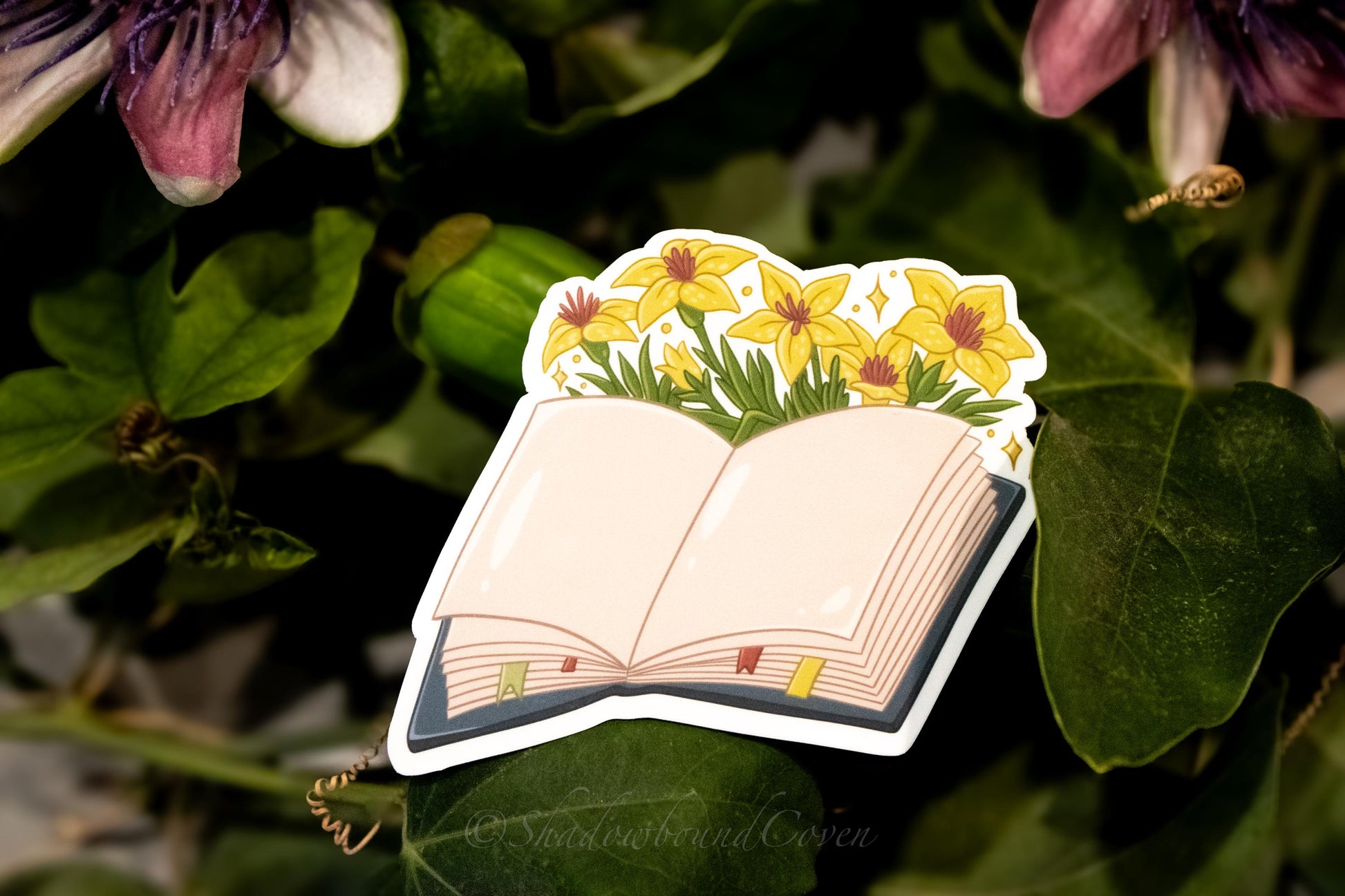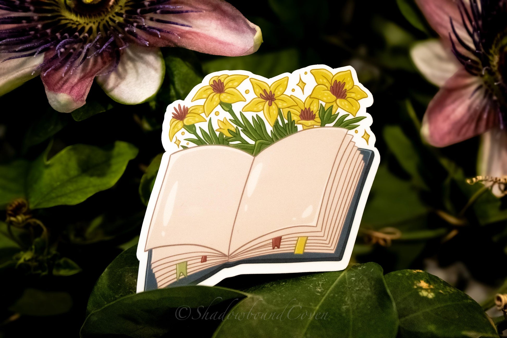 Enhance any surface with our Waterproof Sticker. Featuring a Floral Wildflower Book, this sticker adds a touch of nature-inspired elegance to your laptop, water bottle, or journal.