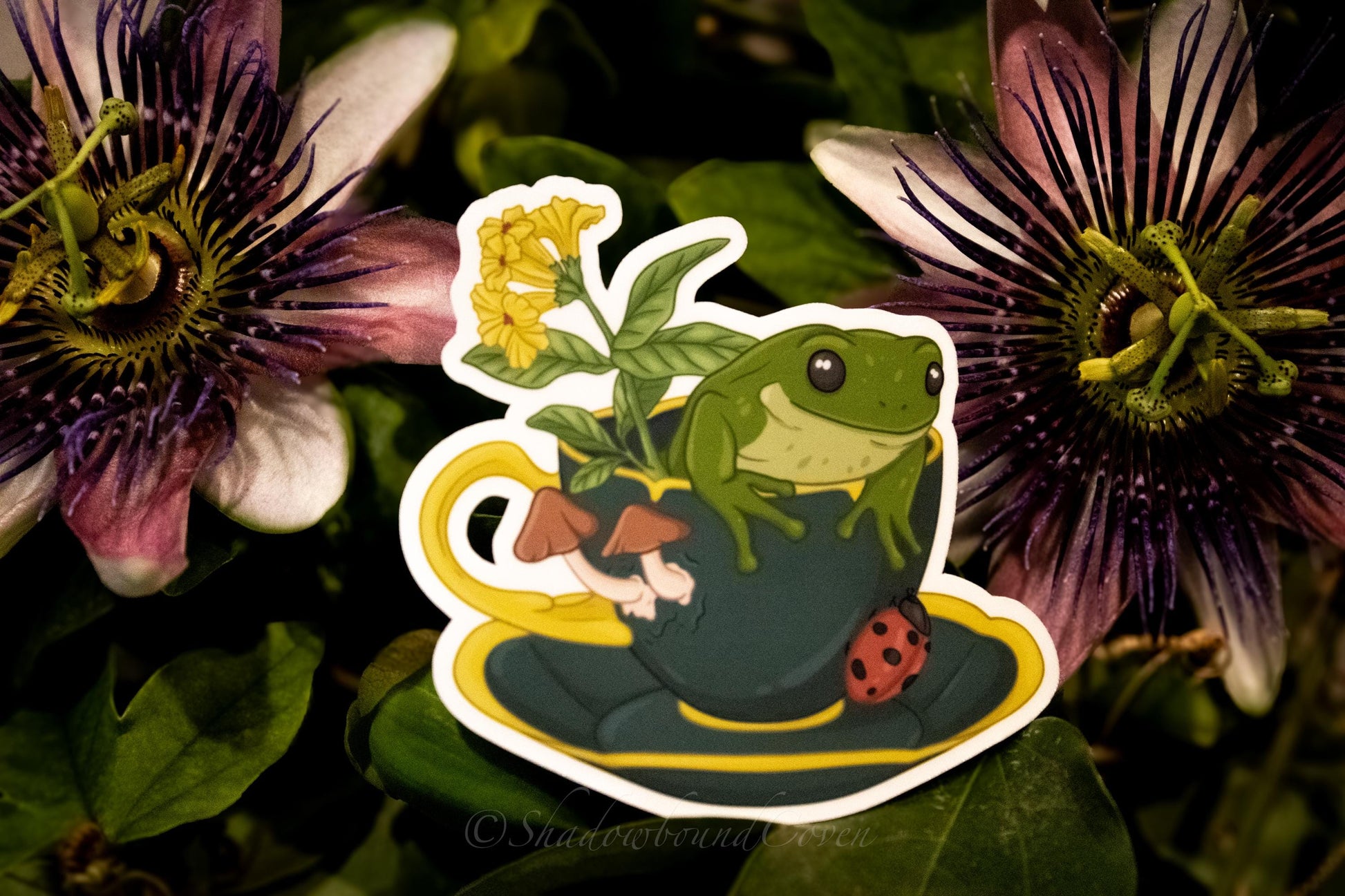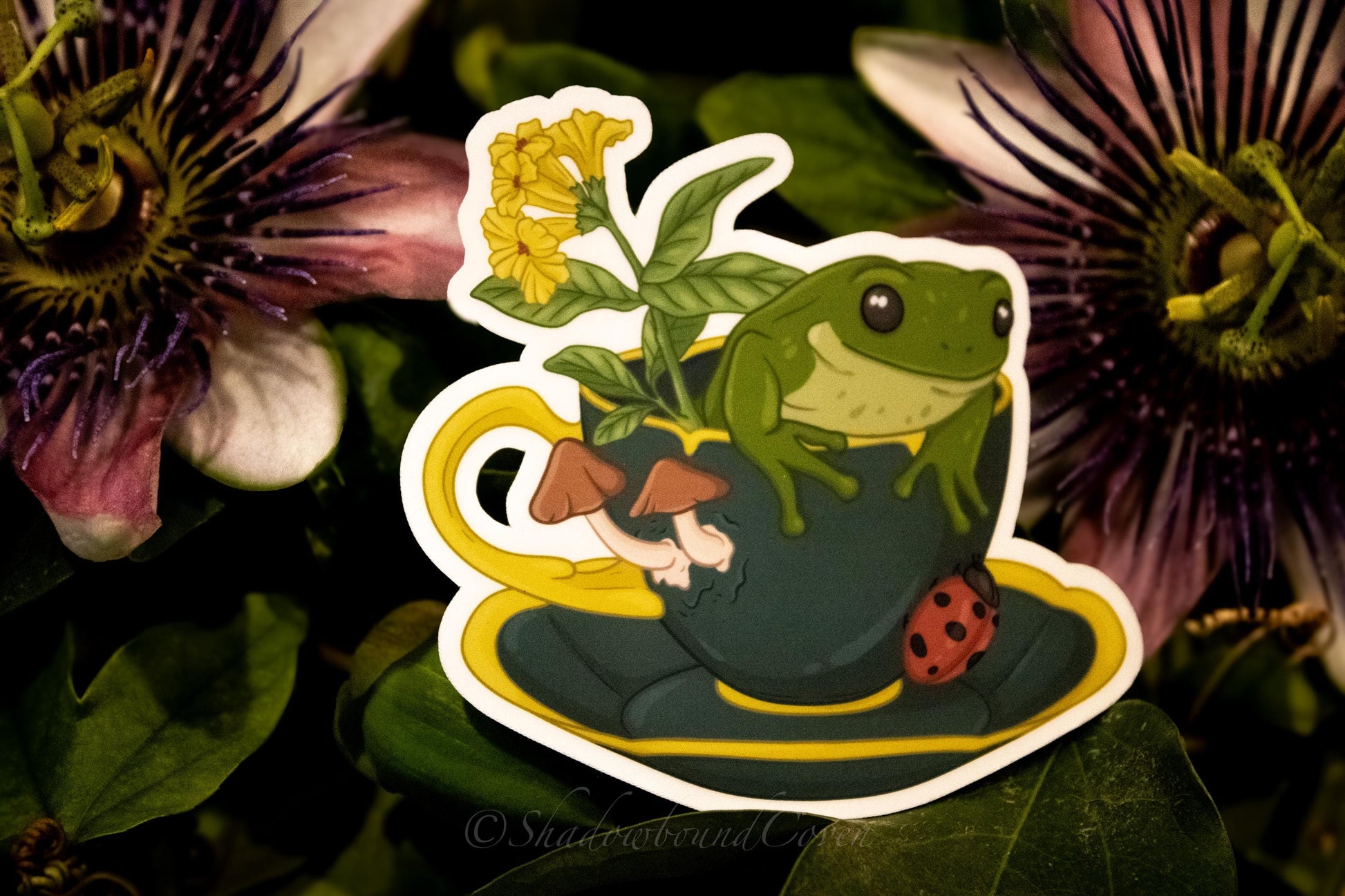 Frog - Goblin core Tea Cup - Waterproof Vinyl Sticker