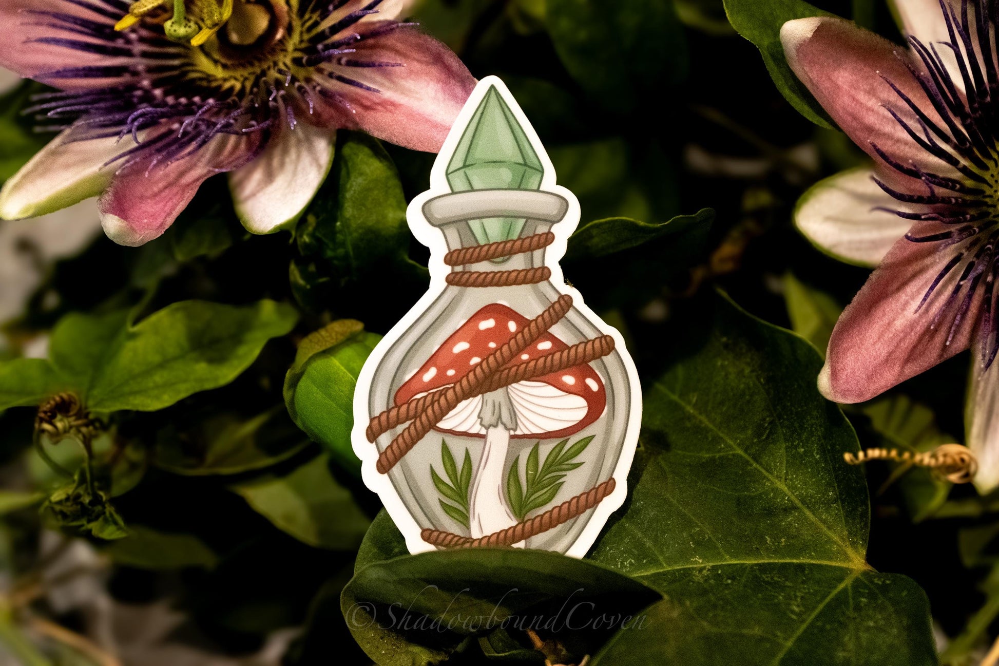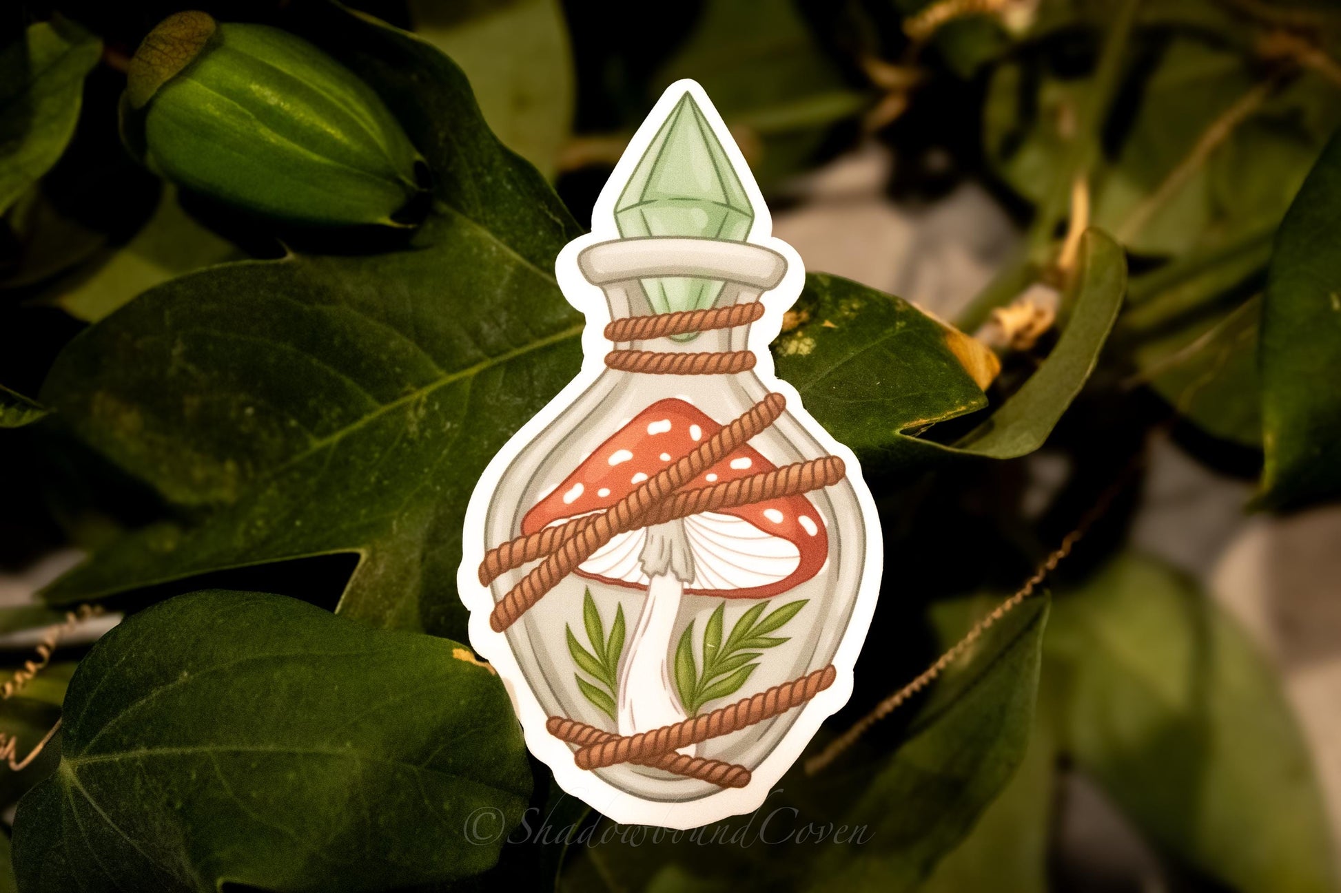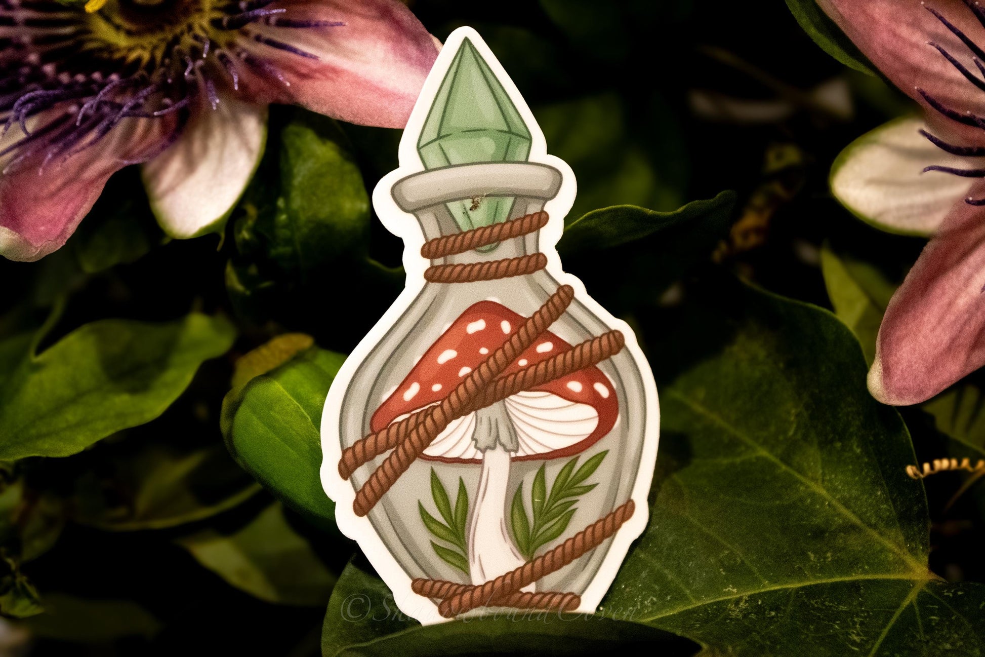 Mushrooms in a Crystal bottle - Waterproof Vinyl Sticker